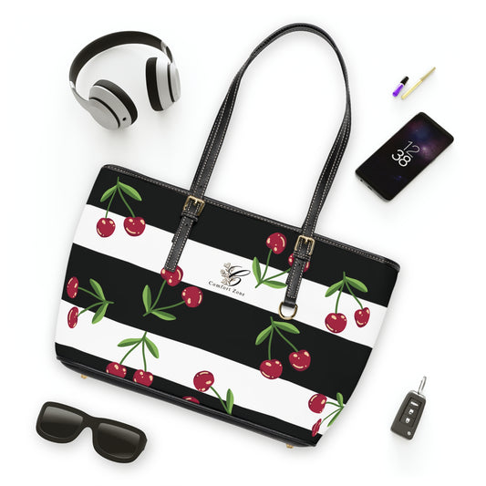 Chic Cherry Print PU Leather Shoulder Bag - Stylish Tote for Every Occasion